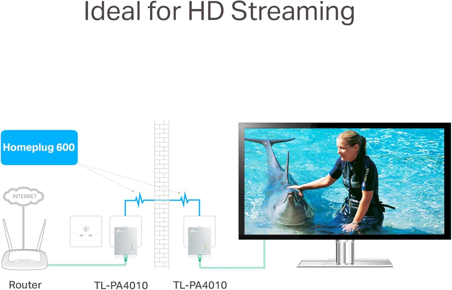 Up to 600Mbps Powerline Speeds Ideal for HD Streaming